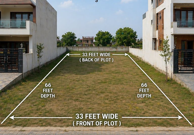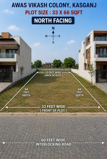 “A 33 × 66 sq. ft. plot is available in Awas Vikas Colony, ideal for residential use with good connectivity and a well-developed surrounding area.”